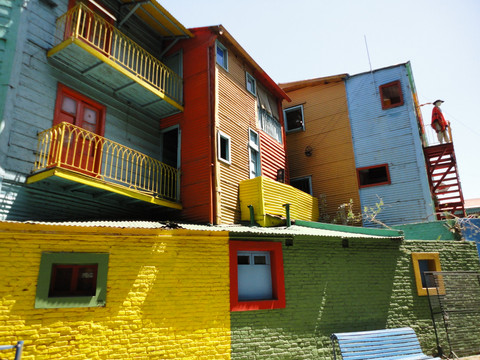 Aqui passava a linha de trem em 1898. Agora é uma rua que se transformou num museu a céu aberto com esculturas e pintores que retratam as casas coloridas, preservadas desde os tempos da vinda de imigrantes espanhóis e italianos que traziam restos de tintas dos navios para pintar suas casas.